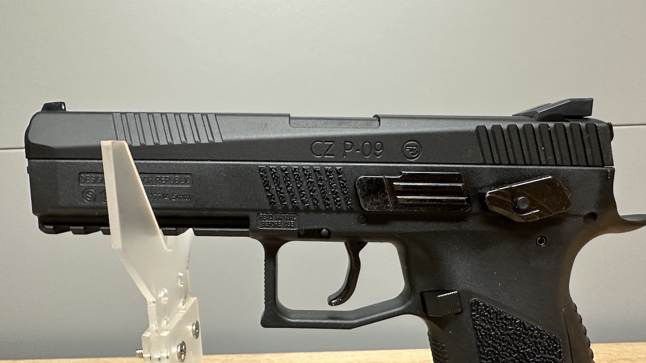 Was beim ersten Anfassen sofort auffällt: Die P-09 Duty fühlt sich sehr wertig an. Der Verschluss besteht aus Metall, das Griffstück aus robustem Polymer – wie beim scharfen Vorbild.
