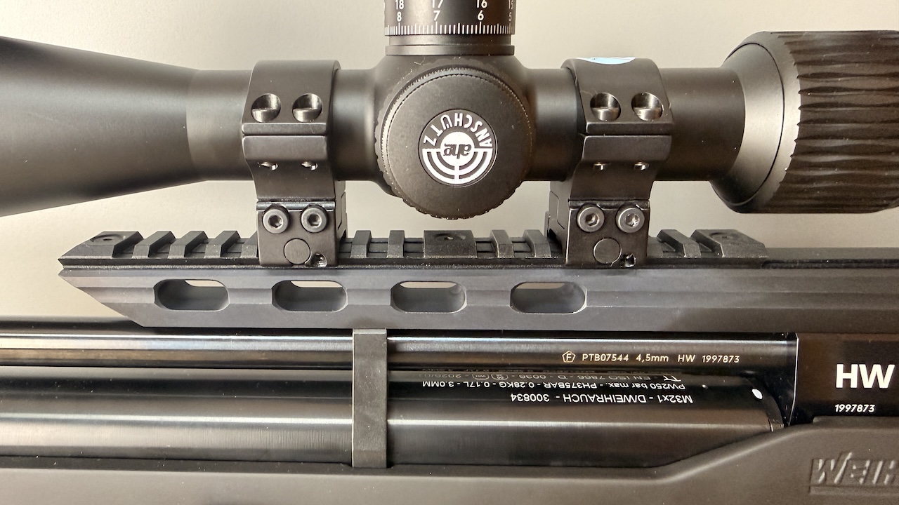 Weihrauch liefert hier ein wirklich rundes Gesamtpaket. Die HW 100 X Bullpup verfügt über eine 11mm-Prismenschiene sowie eine zusätzliche Picatinny-Schiene. Damit seid ihr bei der Wahl eurer Optik komplett flexibel.