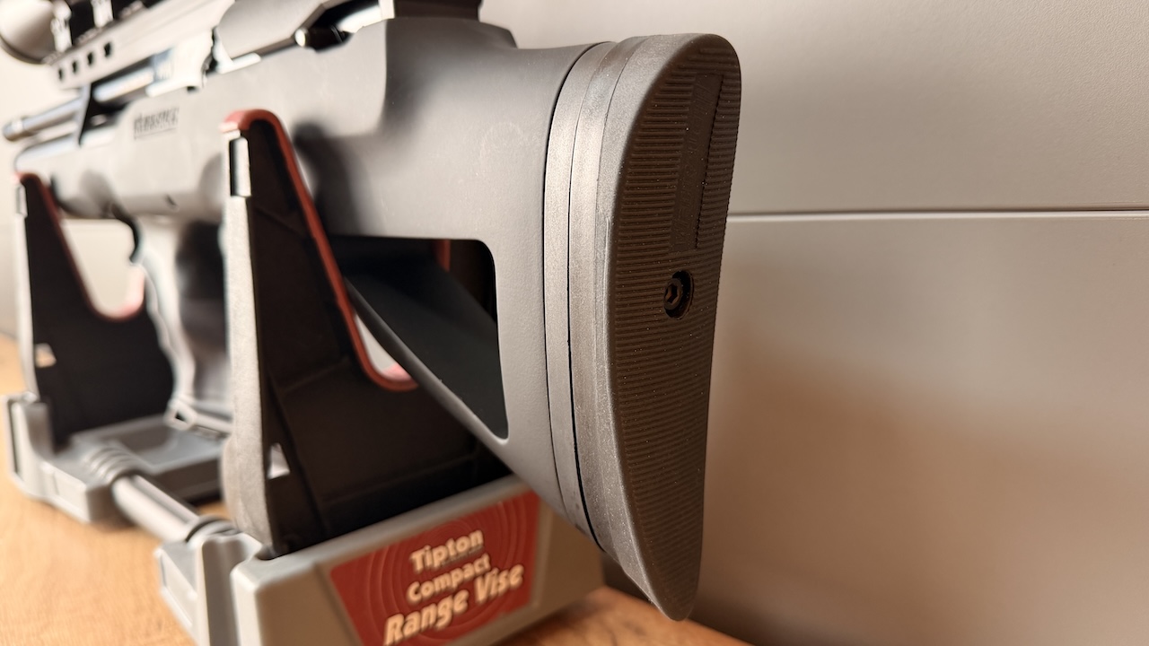 Die Schaftkappe ist sowohl in der Höhe als auch seitlich verstellbar. Dadurch könnt ihr die Waffe optimal auf eure Körpergröße und Anschlagart anpassen.